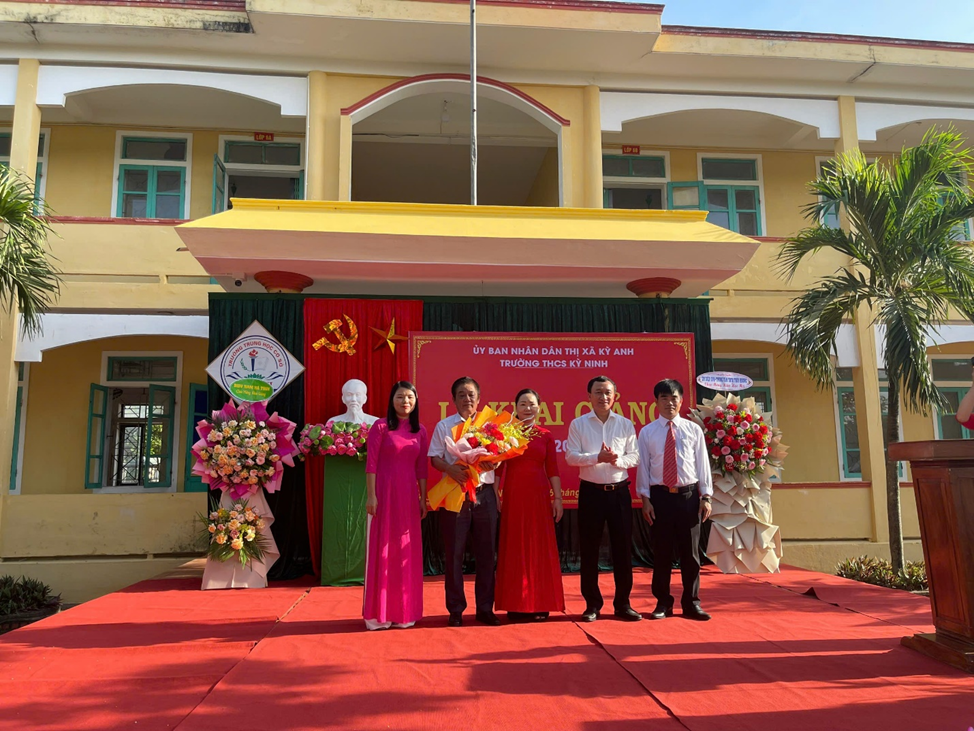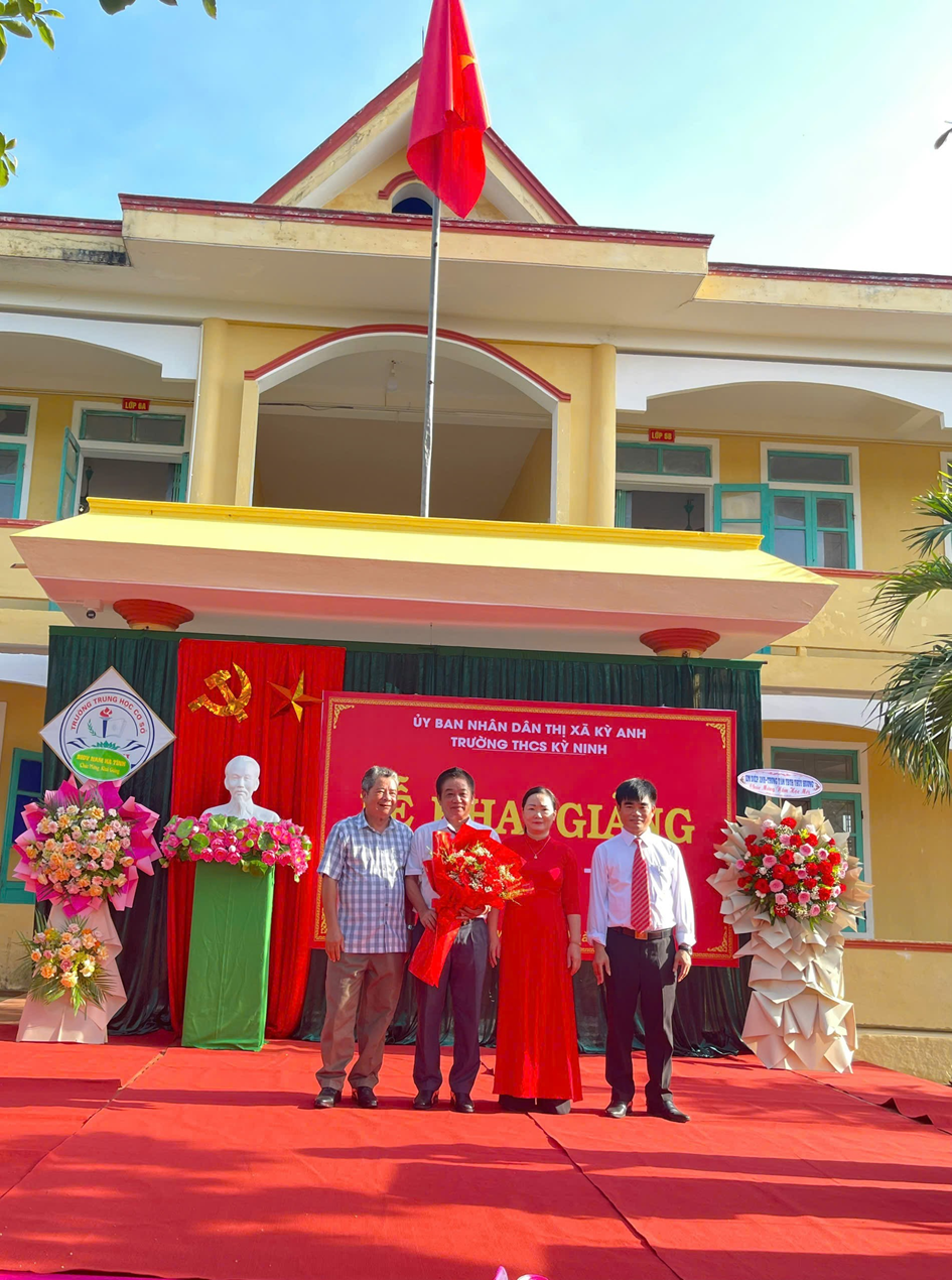 Tới dự, chung vui với thầy và trò nhà trường nhân dịp khai giảng năm học mới 2024 - 2025 có đồng chí Trần Xuân Phượng – Uỷ viên Ban thường vụ Thị uỷ, Phó Chủ tịch UBND thị xã; đồng chí Nguyễn Thị Yến – Phó Trưởng phòng kinh tế thị xã; đại biểu xã Kỳ Ninh có đồng chí Hoàng Trung Thông – Phó BT Đảng bộ xã, Chủ tịch UBND xã Kỳ Ninh; về phía phụ huynh có bác Nguyễn Văn Cương – Hội trưởng hội CMHS