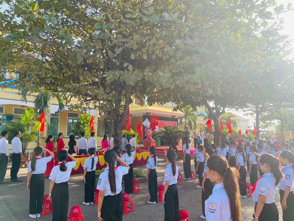 Sau phần lễ là nghi thức chào cờ diễn ra trong không khí trang nghiêm. Bài hát Quốc ca, Đội ca vang lên hào hùng. Hàng trăm ánh mắt đều ngước nhìn lá cờ Tổ quốc với niềm tự hào, phấn chấn khó tả. Trong giờ phút thiêng liêng ấy, cả trường được lắng nghe đồng chí Hoàng Trung Thông – Phó BT Đảng bộ xã, Chủ tịch UBND xã Kỳ Ninh đọc thư của Chủ tịch nước Tô Lâm gửi cho ngành giáo dục nhân ngày khai giảng năm học mới. Những lời dặn dò ân cần của Bác chứa đựng bao niềm tin, hi vọng vào những chủ nhân tương lai của đất nước.