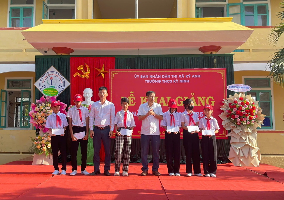 Nhân dịp khai giảng năm học mới 2024-2025, Công ty bảo hiểm nhân thọ Bảo Việt đã trao 20 suất quà ba lô đi học và Hội khuyến học UBND xã Kỳ Ninh trao 6 suất quà cho các em học sinh tiêu biểu vượt khó vươn lên trong học tập với tổng trị giá quà tặng sáu triệu đồng. Với tấm lòng tương thân tương ái, các suất quà đã góp phần động viên, hỗ trợ cho các em học sinh.