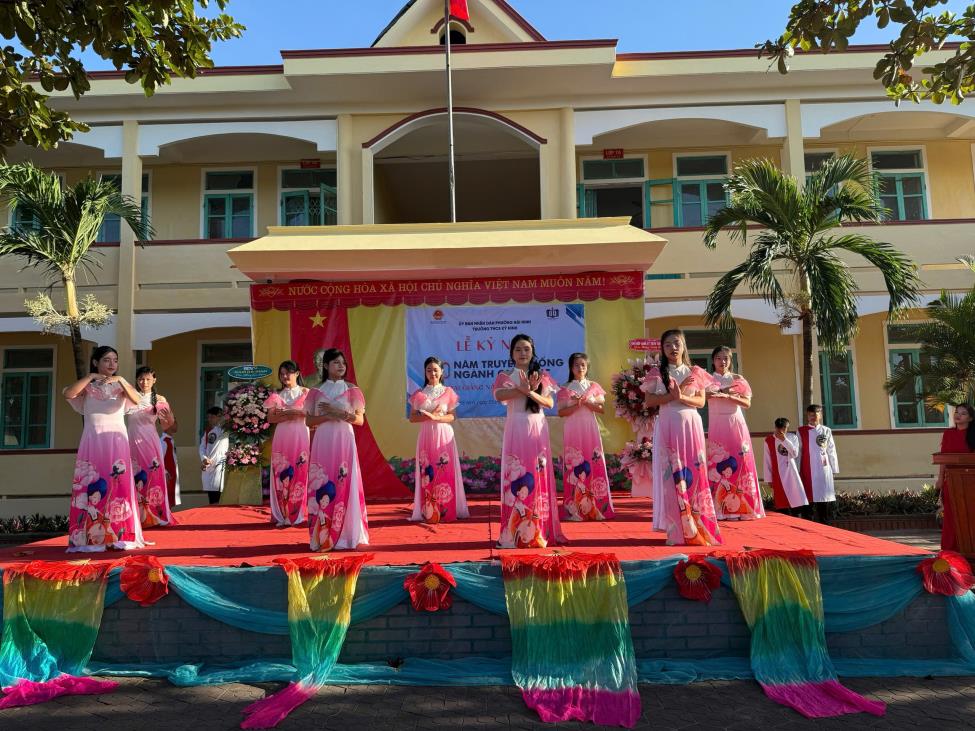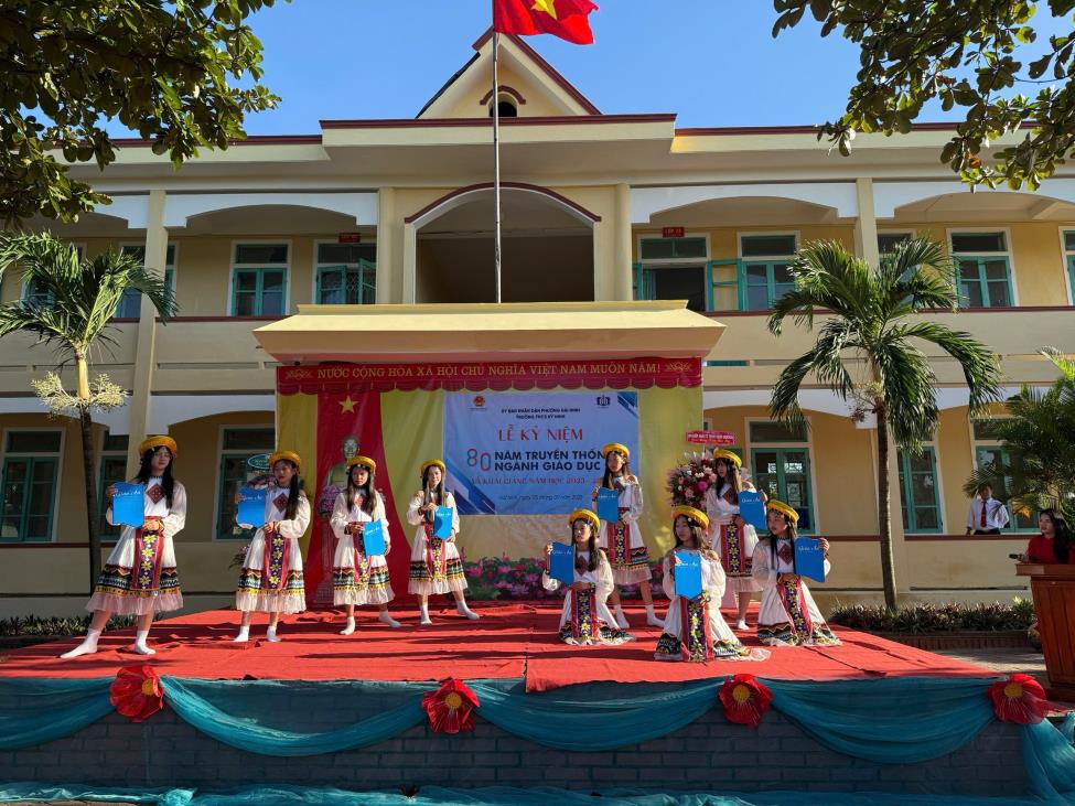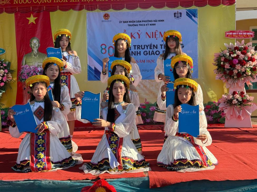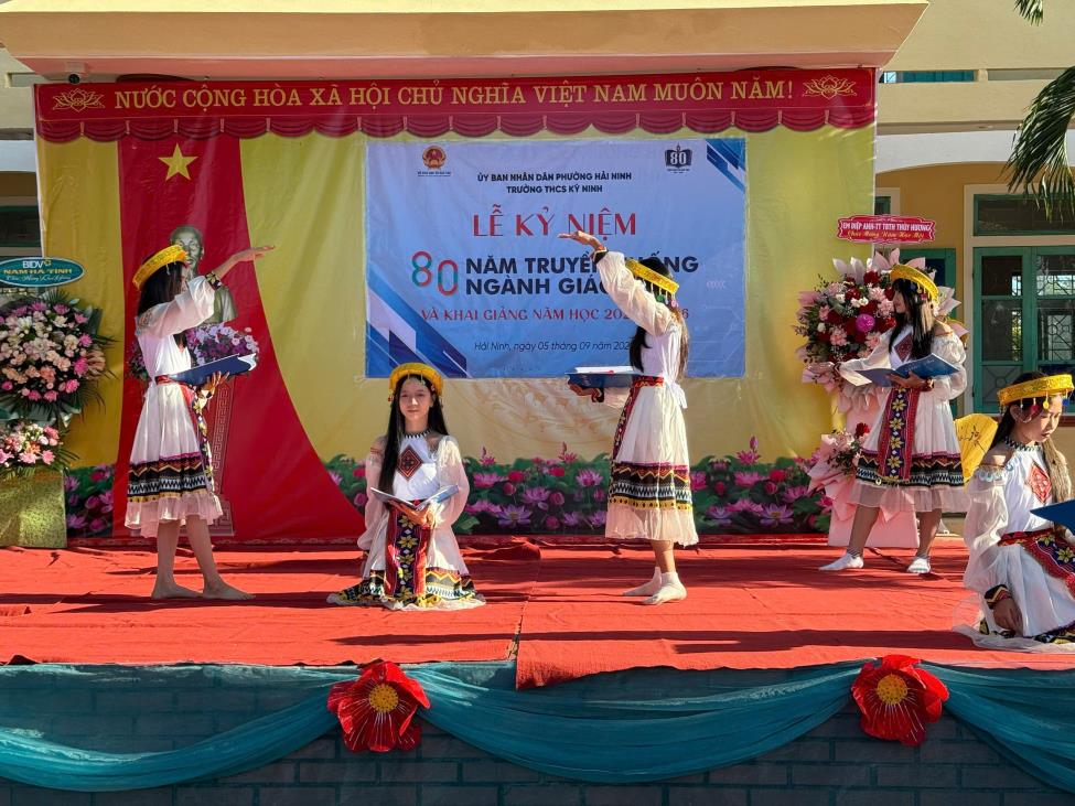 Buổi lễ diễn ra trong không gian rực rỡ sắc màu, ngập tràn tiếng cười của thầy và trò trường THCS Kỳ Ninh với những tiết mục văn nghệ đặc sắc và ý nghĩa chào mừng năm học mới.